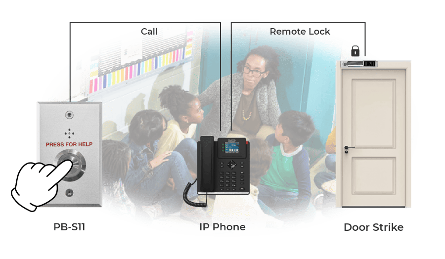 Con DTMF, el personal autorizado puede bloquear o desbloquear puertas de forma remota durante emergencias. Por ejemplo, los equipos de seguridad pueden cerrar las puertas de las aulas durante un tiroteo o una intrusión para proteger a las personas que están adentro y evitar que las amenazas se propaguen.